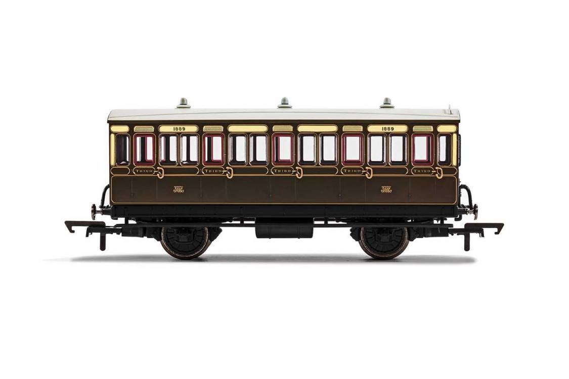GNR 3RD CLASS 5 DOOR 4 WHEEL COACH GAS LAMPS & STEP BOARDS 1636 - ERA 2 - Hornby Coaches R40058